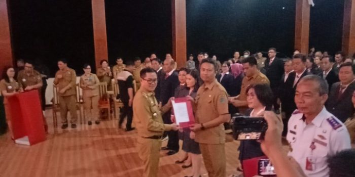 Selain 120 pejabat eselon II, III dan IV di jajaran Pemkab Minut yang dilantik, dilakukan juga penyerahan Surat Pelaksana Tugas yang ada di 11 OPD.