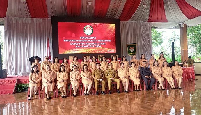 Sementara itu, Bupati Minut Joune Ganda menyampaikan atas nama Pemerintah Daerah dan selaku Penasehat Dharma Wanita Persatuan Kabupaten Minahasa Utara mengucapkan selamat kepada seluruh ketua dan pengurus dharma wanita persatuan yang baru saja dikukuhkan.