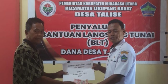 SULUT BASUARA.COM, Minut – Bantuan Langsung Tunai Dana Desa (BLT-DD) tahap II periode April, Mei dan Juni tahun 2023 untuk 30 Keluarga Penerima Manfaat (KPM) di Desa Talise, Kecamatan Likupang Barat, Kabupaten Minahasa Utara (Minut) disalurkan.