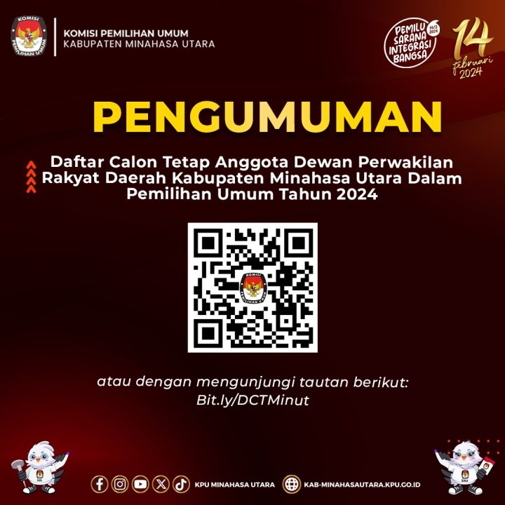 SULUT BASUARA.COM Minut – Komisi Pemilihan Umum (KPU) Kabupaten Minahasa Utara (Minut) mengumumkan 341 Daftar Calon Tetap (DCT) anggota DPRD Minut dari 17 partai peserta Pemilu 2024 yang tersebar di 4 daerah pemilihan (Dapil), Sabtu (04/11/2023)