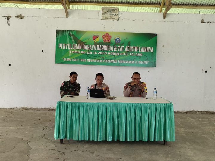Sulutbasuara.com – Penyuluhan Bahaya Narkotika Dan Zat adektif dalam rangka TMMD yang Ke -199 TA 2024. Kodim 1312 Talaud bertempat di Aula Kantor Camat Essang Kecamatan Essang Kabupaten Kepulauan Talaud,14/3/2024, pagi.