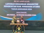 Manado – Pemerintah Kabupaten (Pemkab) Minahasa Utara (Minut) oleh Bupati Joune Ganda menyerahkan Laporan Keuangan Pemerintah Daerah (LKPD) Unaudited tahun anggaran 2024