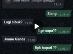 MINUT – Nama Bupati Minahasa Utara (Minut) Joune Ganda kembali dicatut oknum tidak bertanggung jawab. Baru-baru ini, sebuah nomor +6285761649047 mengirim pesan